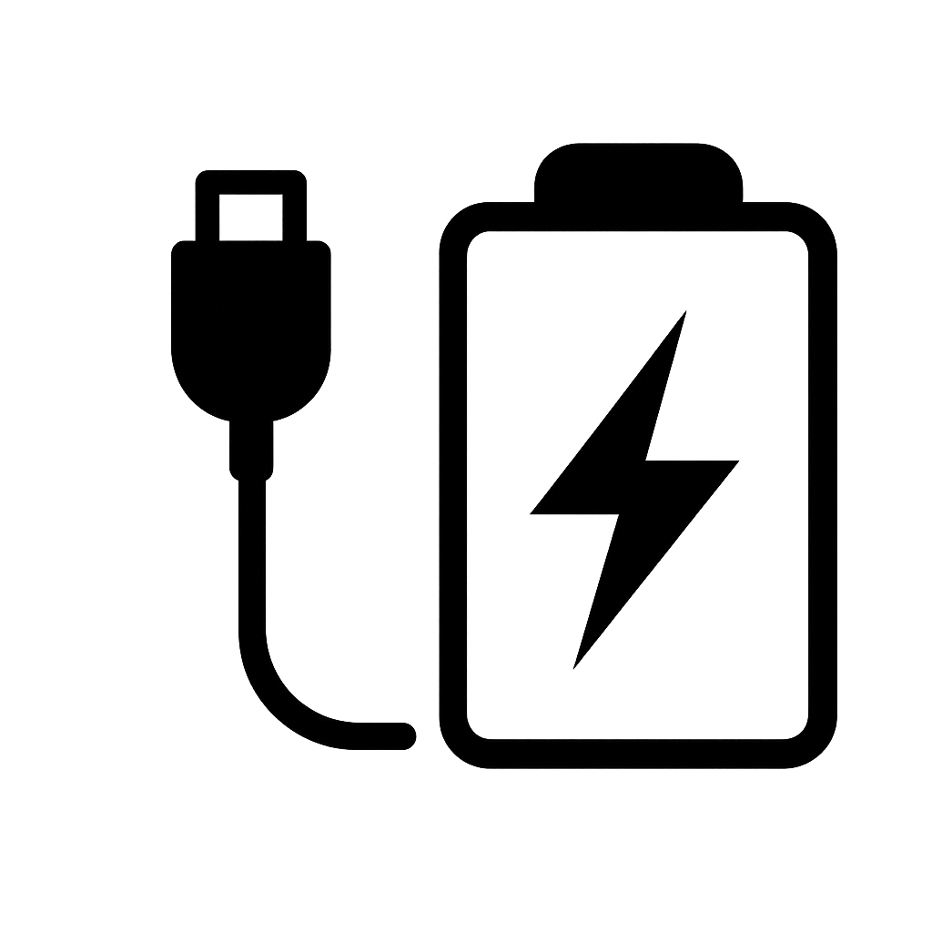Du behøver ikke bruge almindelige batterier. Maskinen har et indbygget batteri, som oplades med et USB-C-kabel (medfølger). Når du har ladet den op, kan du bruge den igen og igen – præcis som en mobiltelefon.